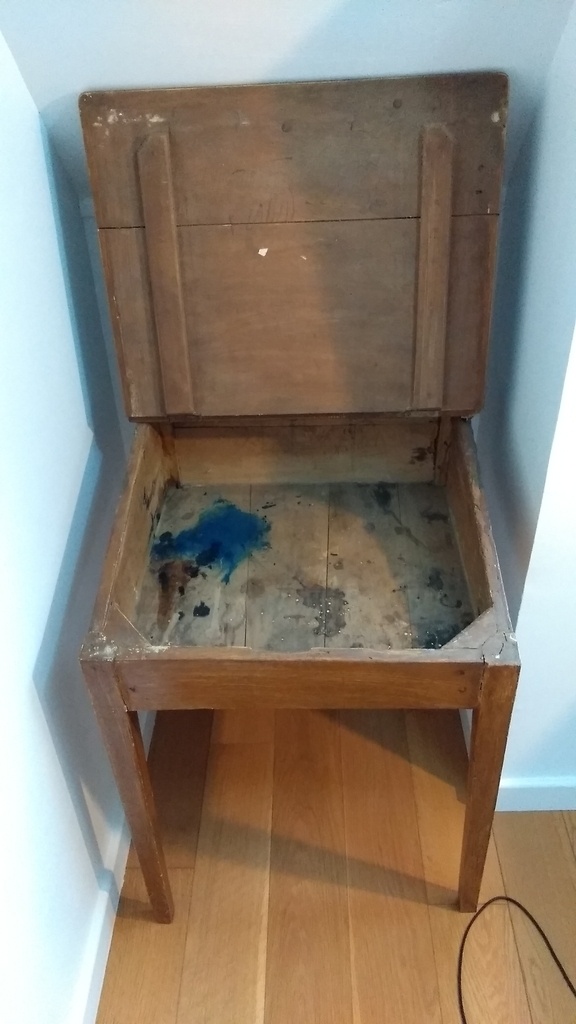 Il peut donc s'ouvrir et il me reste éventuellement à aménager l'intérieur pour le futur petit écolier de CP. Pour le moment c'est plus un coffre à jouet supplémentaire pour mettre quelques trésors et quelques coloriages quand même.
