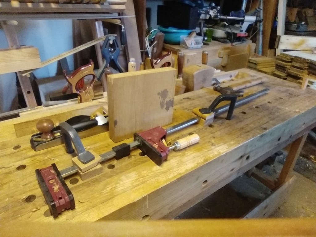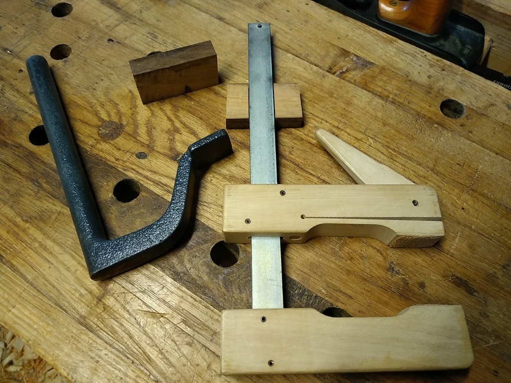 Bien vu. Tes serre-joints à came sont fins je suppose. Pour plus gros, tu peux directement fixer une vieille presse à vis en bois.