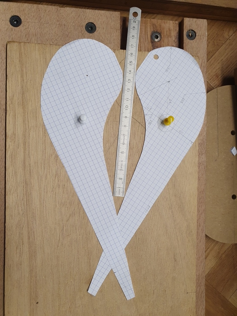 Si cela t'intéresse, après plusieurs feuilles de papier froissées, je suis arrivé à une forme qui a l'air d'aller pour un entraxe de pivot de 96mm