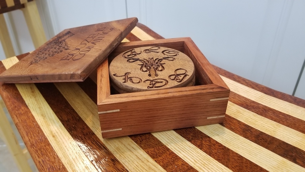 Cadeau de noël pour le frangin et sa femme. Set de sous-verre avec les emblèmes des principales maison de la série GoT. Et un jeu de mot idiot...