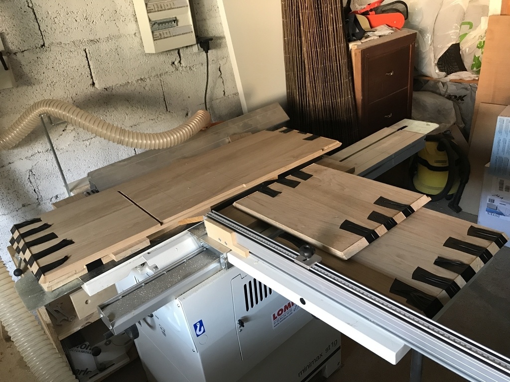 Découpes à 15° à travers fil puis premier collage en bois de bout.