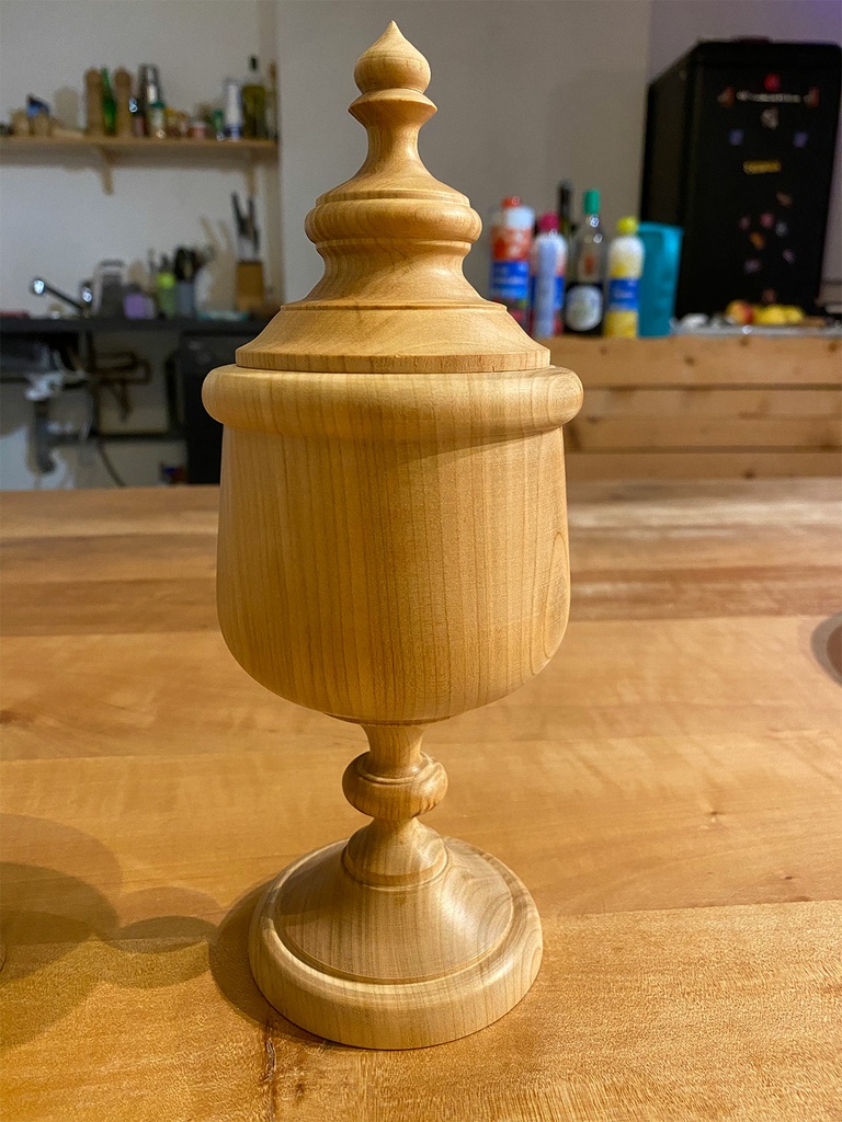 Quelques bricoles de tournage, en chêne, en poirier, le petit poivrier en buis fait 170mm. Les autres font 250mm, le grand vase en poirier fait 280mm de long, le petit en poirier aussi fait 150mm et des petites boites à épices. Pour noël dernier j'ai tourné une dizaine de jeux de poivrières, salières en chêne, noyer et érable. Et des assiettes avec du noyer un peu piqué... Après ça reste du tournage d'amateur...