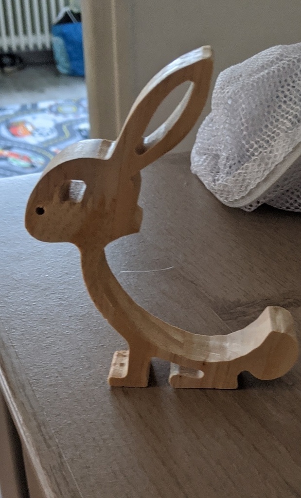 Bonjour, Voici une famille de petits lapins en bois que j'ai réalisé pour pâques. La chasse aux œufs de cette année ayant été spéciale. J'ai offert ces petits lapins au déconfinement.