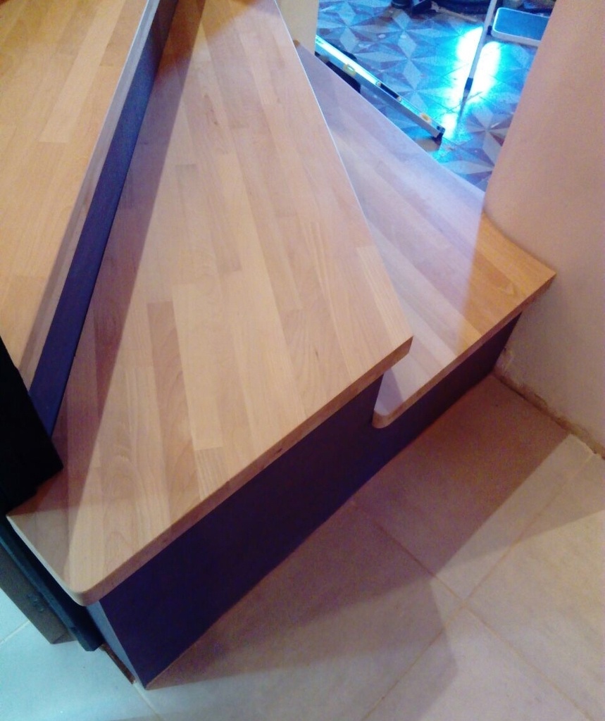 pour les marches du lamellé-collé de hêtre en 22mm (le nez de marche est épaissi avec une baguette faite dans le panneau)