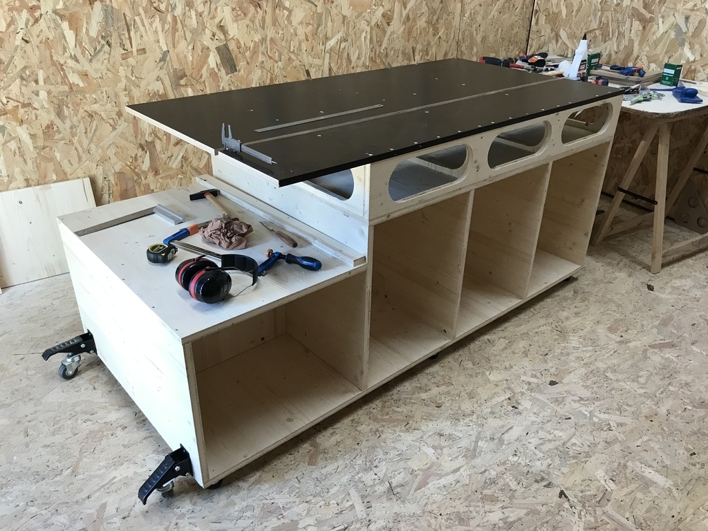 Ça me semble assez clair que manque une scie sous table sur cette jolie création...;) et des étagères et le materiel Dedans.