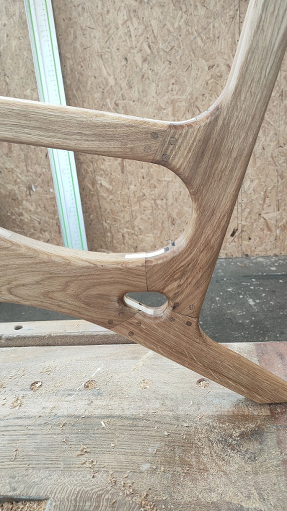 Je rejoins les commentaires concernant le point de « faiblesse » potentiel du pied arrière . Je valide le principe de la triangulation avec une nuance sur le fait que si l’on s’appuie confortablement sur le dossier celui-ci peut potentiellement exercer un effort quasi perpendiculaire à ce pied favorisant la flexion de celui. Ce qui conduirait à un moment de flexion à l’assemblage pied/assise donc de la contrainte non négligeable. Si comme tu le disais c’est un coup d’essai (un très beau coup déjà), peut être devrais tu suivre le conseil de Philippe Gelard et faire cette pièce continue jusqu’à l’accoudoir.