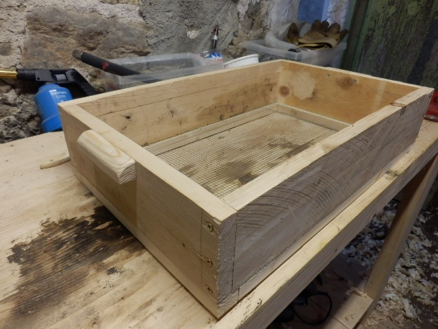 De plus la construction fait qu'il est facile de remplacer le grillage, si on veut utiliser une maille de taille différente suivant les projets. Suffit de dévisser les tasseaux sous le tamis, positionner le nouveau morceau de grillage, et revisser. C'est pas possible avec les tamis de GSB...