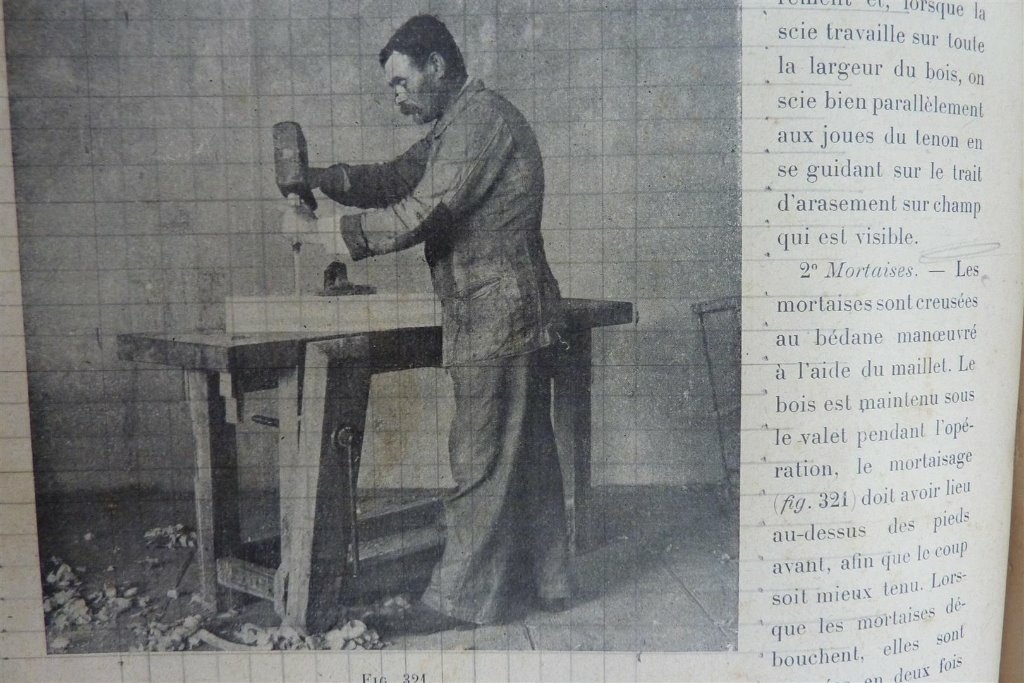 les maillets se font en charme ...les surfaces de frappes sont bombées(le choc est alors centré sur le bout bombé des ciseaux ou bedanes ) parfois le manche plat (en frêne) est plus large dans la tête pour eviter qu'il se demanche ... ou un manche rond dans un trou evasé en sortie avec un coin en bois dur collé anti demanchement ...