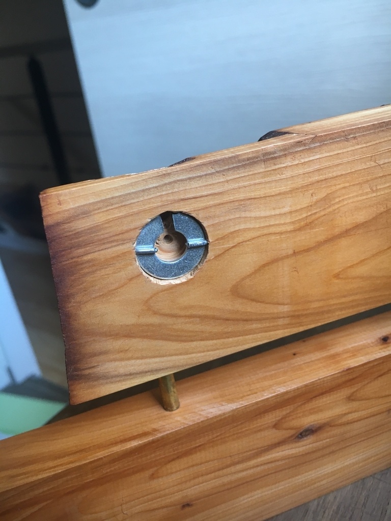 Fixation entre les deux planches en tube laiton.