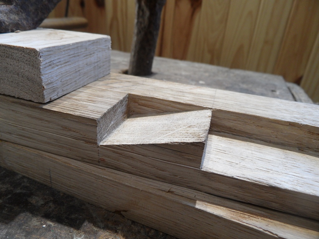 - La chute que j'ai trouvée est du chêne (le hêtre est préconisé, mais je n'en ai pas), qui plus est avec de gros noeuds.