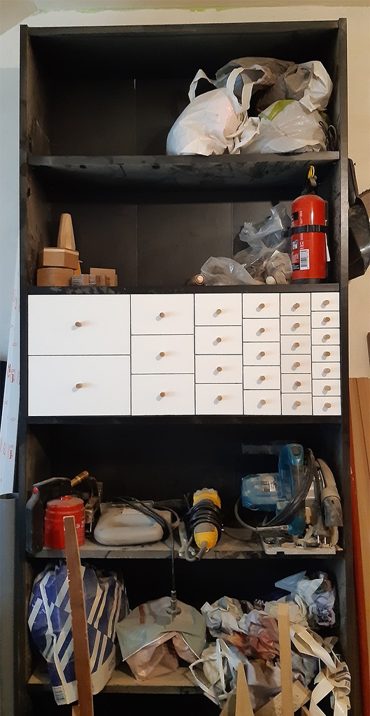 pfiooouuu, 27 tiroirs, ça commence à faire. je trouve super sympa, mais je ne sais pas si j'aurais la patience, surtout avec 6 tailles différentes ! Bravo. Comme dit Kentaro c'est dommage de le cacher à l'atelier, il mérite mieux