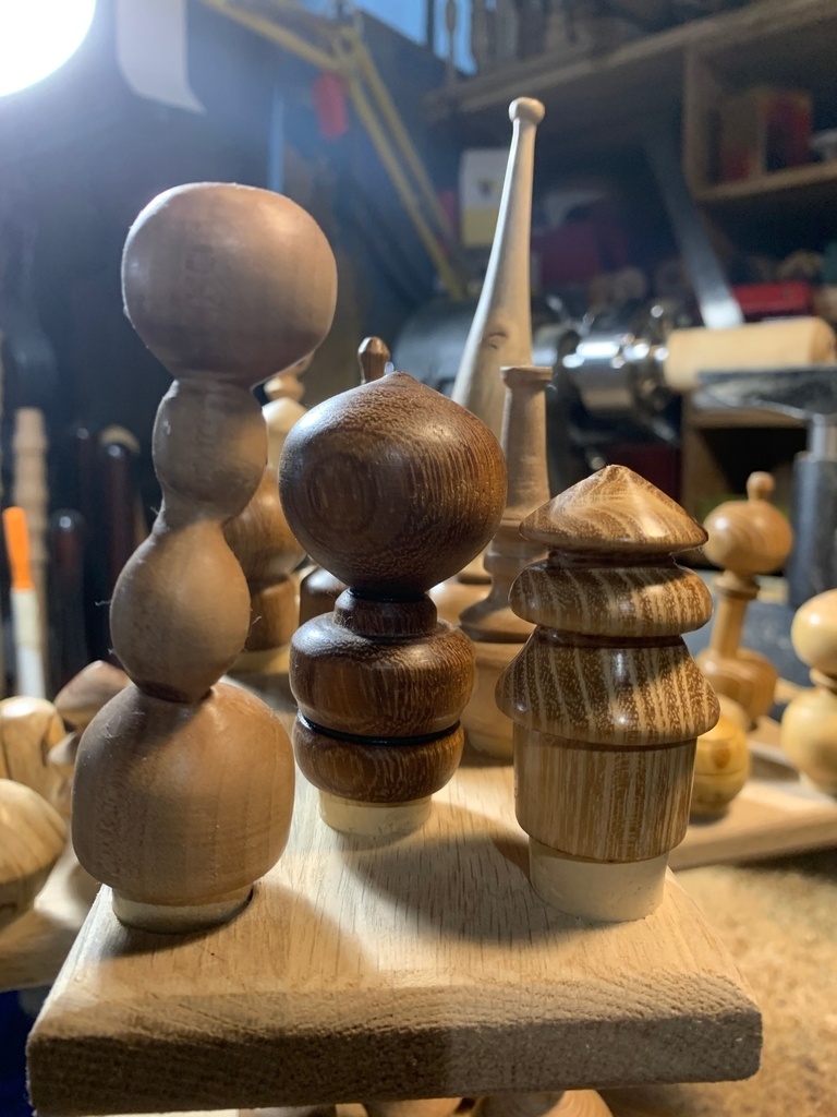 La folie du tournage m'ayant gagnée depuis le premier confinement, j'ai réalisé toutes une série de bouchons dans des essences de bois très diverses: platane, cyprès, accacia, chêne, hêtre, buis glanés dans la ferme de mon grand frère. Il n'y que l'amarante et le cumaru que j'ai trouvé dans une déchèterie... incroyable. J'ai réalisé le support et le tout est visible chez un ami encadreur du centre ville de Montpellier