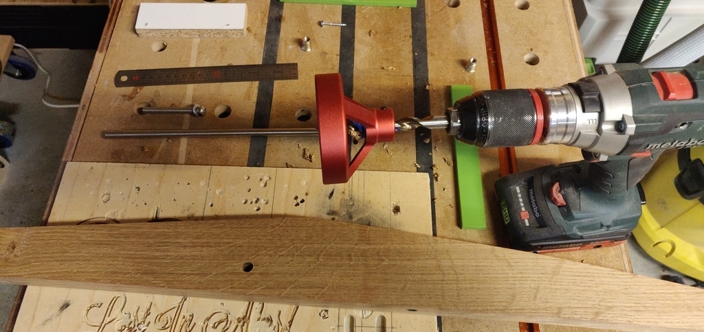 S'en vient le perçage des axes et l'ajout d'inserts sur les pieds de l'assise et de tubes inox sur les autres.