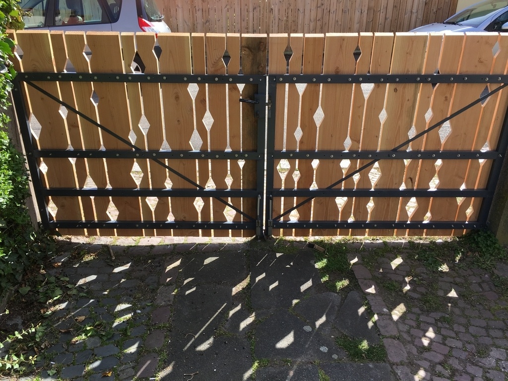 nettement plus sympa le portail en bois, qui plus est assorti à la clôture en face.