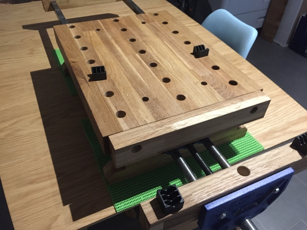 C'est certain : on est bien loin du roubo ou des établis shaker, mais quand on pas la possibilité d'aller à l'atelier (et qu'on travaille pas sur des pieces trop grandes hein !), ça fait le boulot !