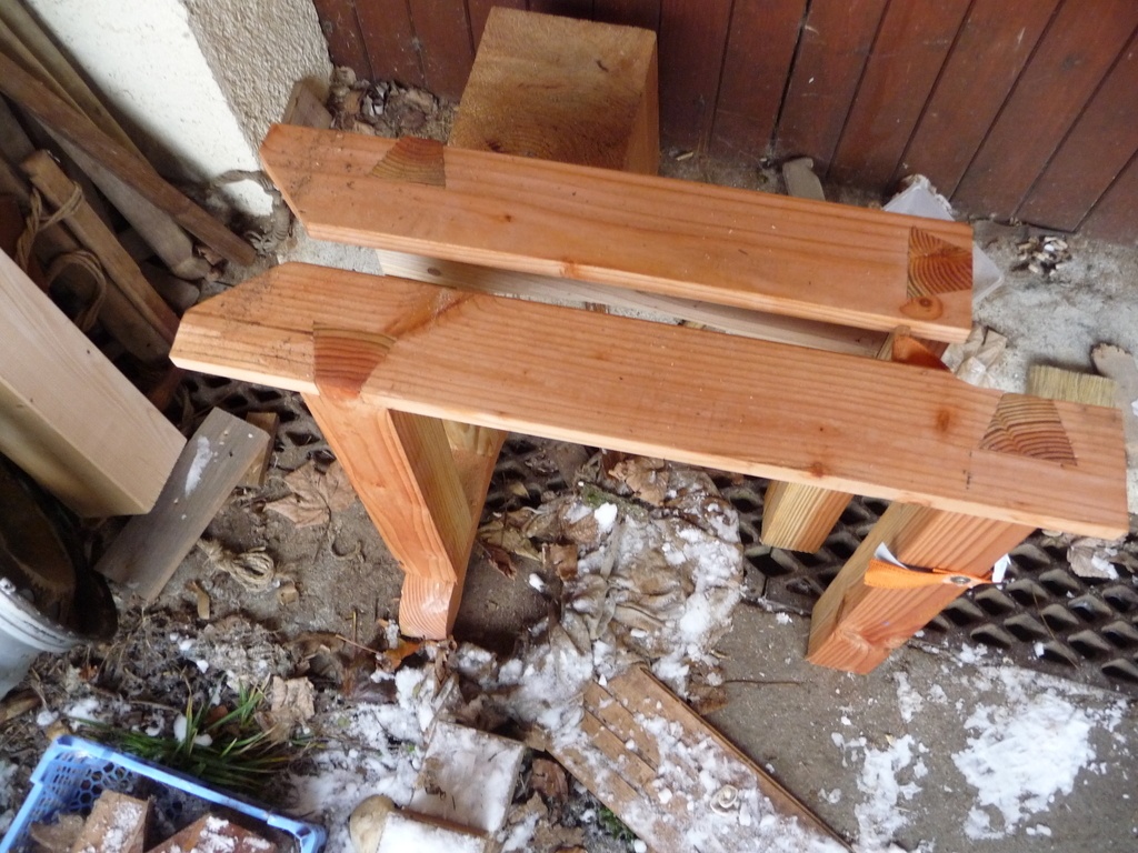 je me suis donc senti obligé des les utiliser et pour la scie égoïne il me fallait un banc de sciage donc au boulot !!!
