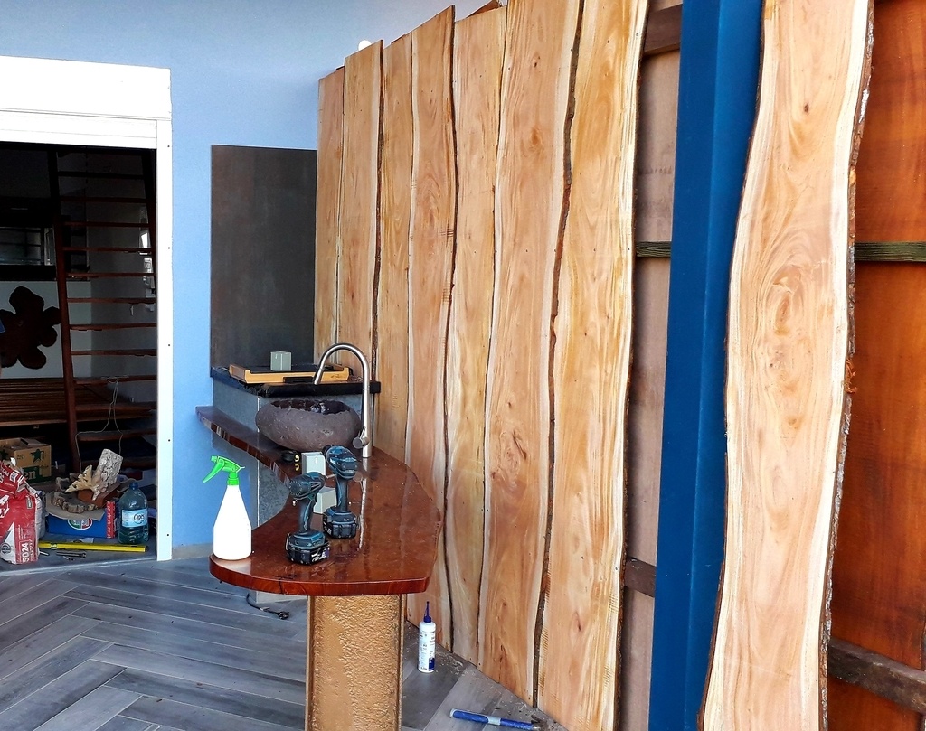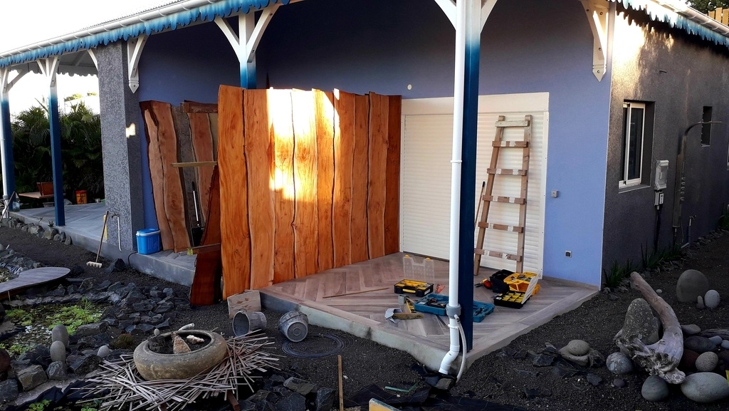 Séparation de deux espaces privés avec de magnifiques panneaux en Mahogany coupés selon ma commande.