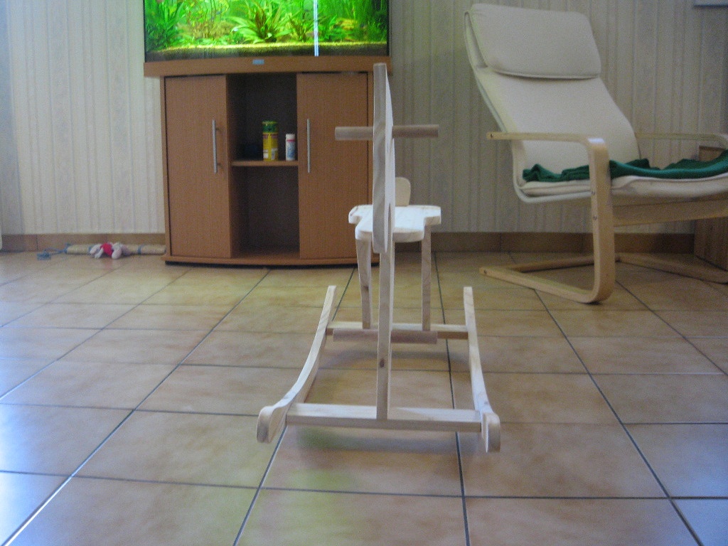 J'ai réalisé ce cheval il y a 5 ans pour les 2 ans de ma nièce. La forme est tiré d'une image chopé sur internet. Pour faire les plans j'ai redimensionné l'image (vue de face) pour que l'assise soit à la hauteur voulu (avec l'aide d'un logiciel de traitement d'image, j'ai sorti les contours de chaque pièce que j'ai imprimé à l'échelle 1:1).