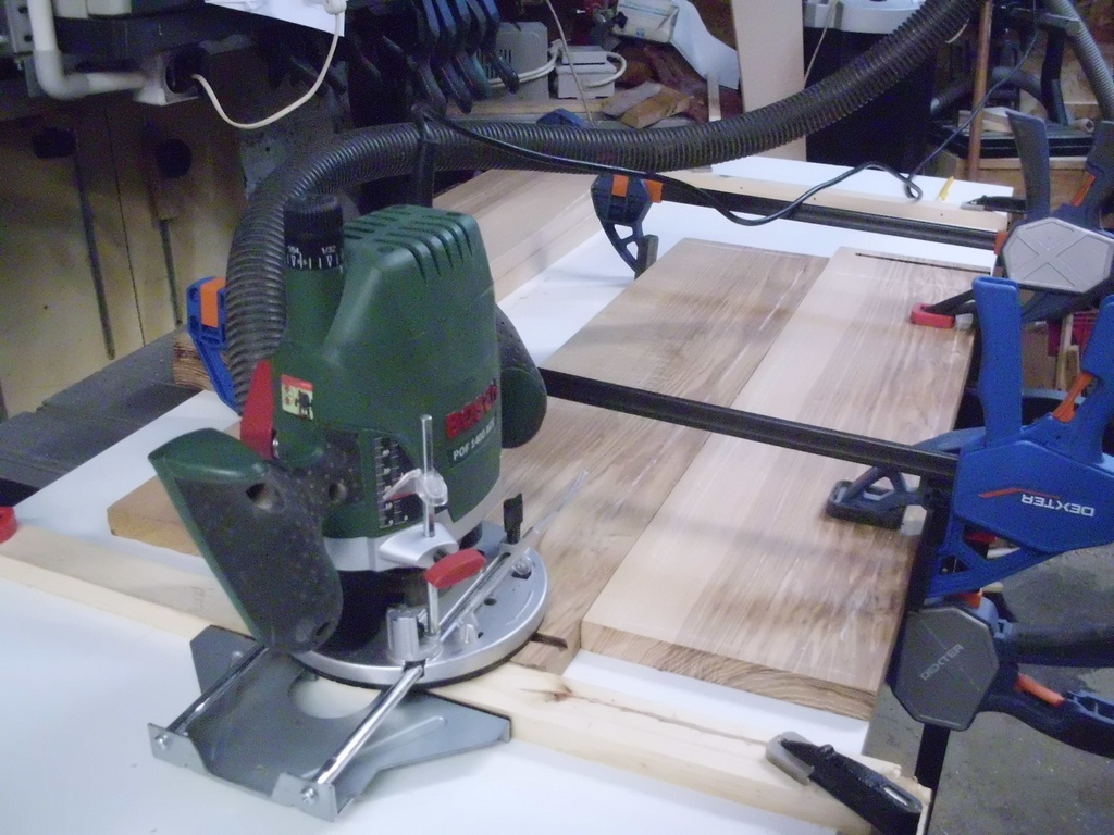 Les planches étant rabotée, juste un travail de découpe, préparation des gabarits en médium pour les arrondis, prédécoupes à la scie sauteuse sous table, puis passage à la toupie.