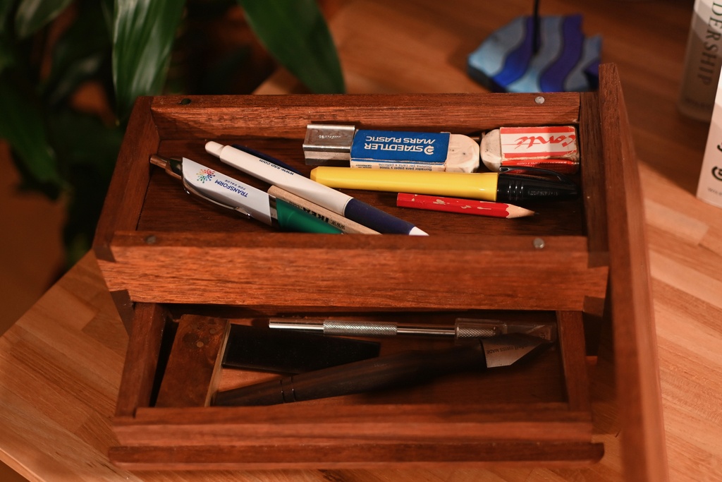 Un petit organiseur pour l’atelier. Certains l’auront reconnu, il y a l’inspiration de l’organiseur de Paul Sellers. Le tiroir n’est pas a queues occultées car je ne me le suis pas senti... et le dessus est tenu par des aimants, je voulais essayer et me suis dit que sur l’établi cela pouvait etre pratique... je confirme