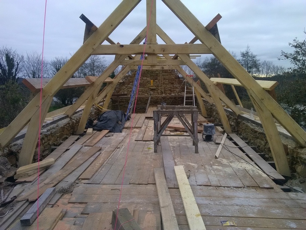 Pour ceux que ça intéresse entre le châtaigner pour la structure, les pannes, voliges, chevrons, ardoise, vélux, goutières etc... on est as pas moins de 20 000 € de matériaux. Pour une toiture de 180 m².