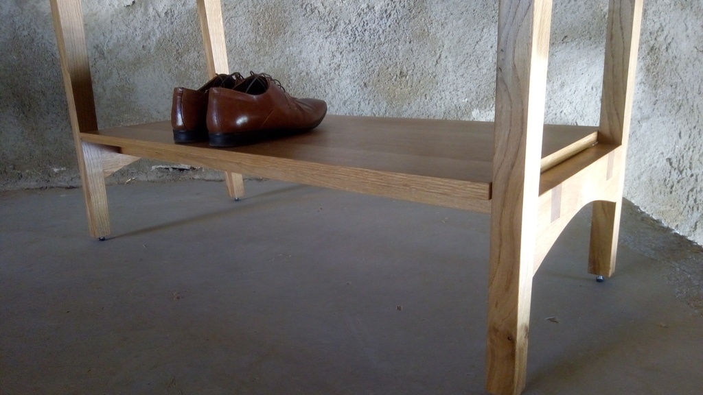 La tablette basse repose sur des traverses qui sont assemblées à queue d'arronde avec les traverses basses du piètement.