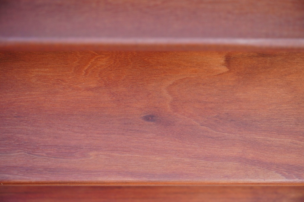 Okan que j'ai récupéré en poutres et donc j'ai déligné l'une d'elles pour en faire une marche plus large. Encore un peu de colle. Ponçages multiples et vernis satiné pour l'okan.