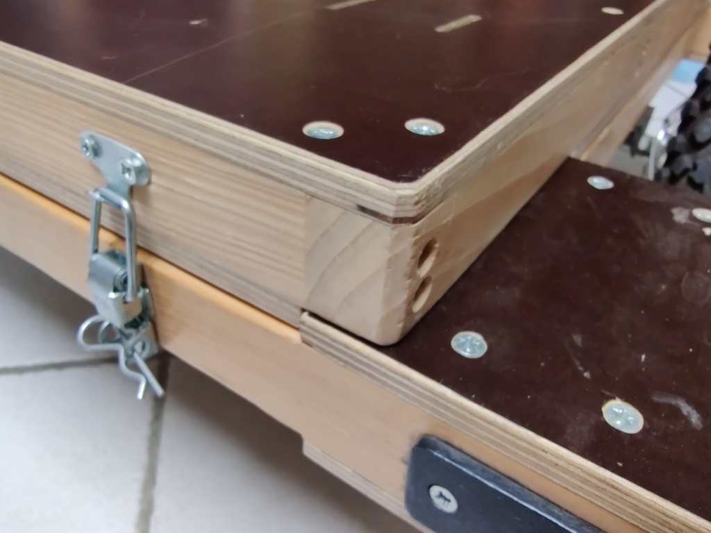 C'est carrément solide, les vis se prolongent pas mal en profondeur et c'est bien suffisant je pense. Le problème de la traction c'est surtout lorsque ça "pompe" (la charriote fait des allers/retours). Mais avec cette trouvaille du pneu de voiture, ça pompe très peu, et donc très peu de forces de traction. J'ai pu porter jusqu'à 4 plateaux de chêne en 27mm de 3,5m de long. C'est plutôt le ballant du timon qui me pose souci dès que y'a la rallonge et beaucoup de poids dessus.