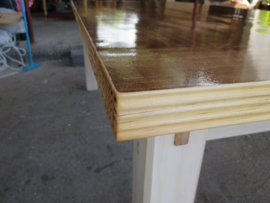 Voici le dernier projet sorti de mon atelier, une table en pin pour un ami.