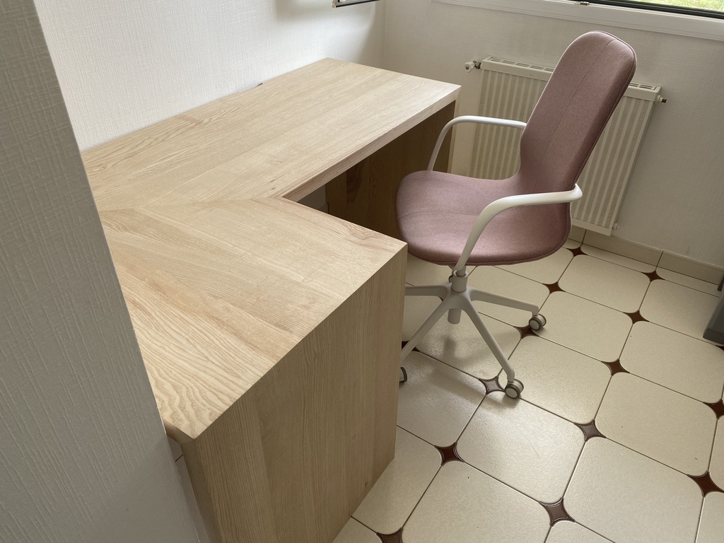 Voici ma dernière réalisation pour une amie. Elle a récupéré un stock de Frêne (plateaux de 70mm d'épaisseur) elle désirait un nouveau bureau pour son télétravail.