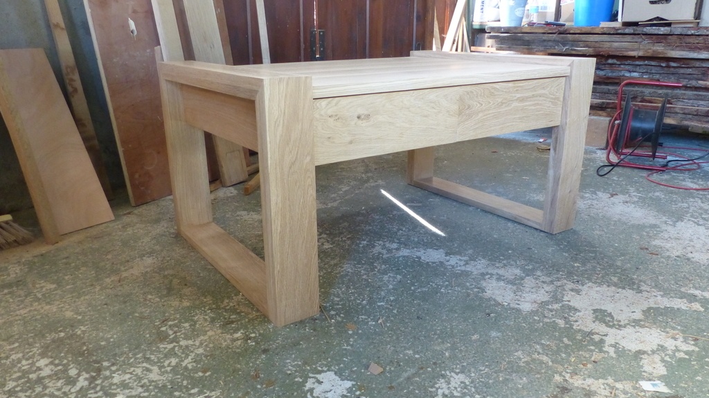 cette table est en chene pour les partie exterieur et en hetre pour les tiroirs