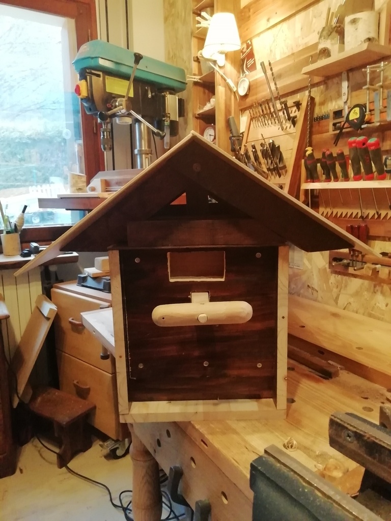 J'ai voulu ajouter un toit, le soufflet ayant vocation à passer une bonne partie de l'année dehors, exposé aux intempéries.