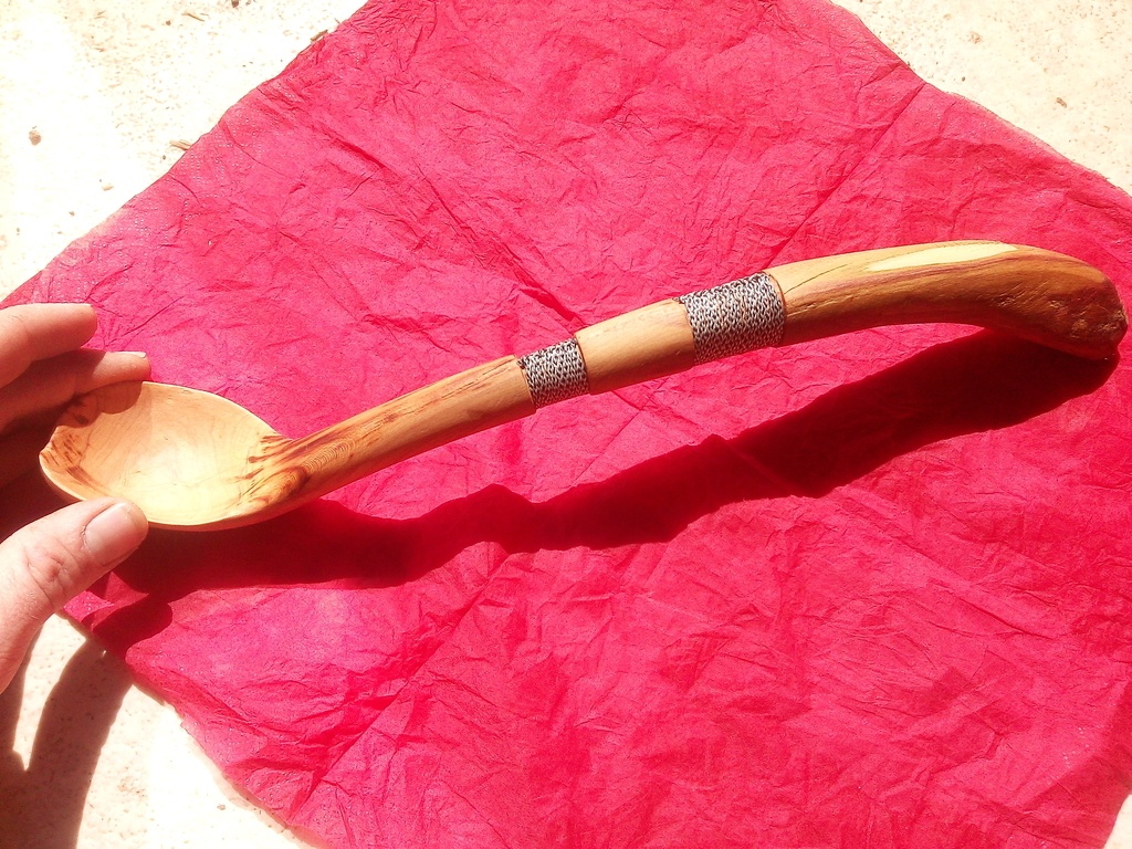 Le bois était très torturé lors de la fente il a fendu en plusieurs endroit du coup je n'est pas pu faire une grosse louche d’où la "demi-louche"