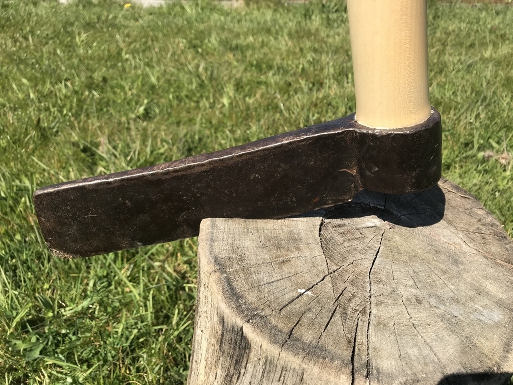 Le manche est enfilé dans le fer et serré avec des petits coins en buis, ça tient vraiment bien, et le tout est fini avec deux couches d'huile de lin