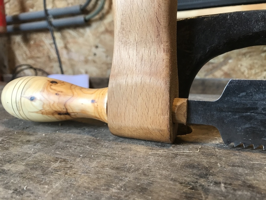 Donc en tout, j'ai restauré les montants, fait un nouveau sommier, fait des nouvelles poignées et nettoyé la lame.