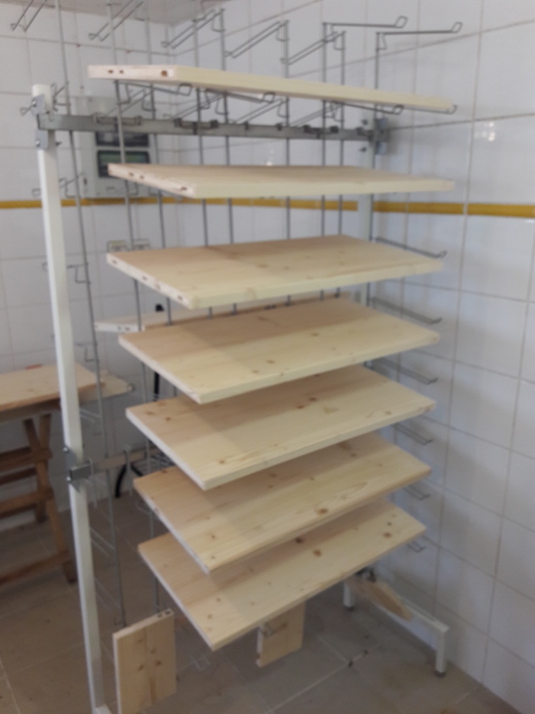 Le rack de séchage, c'est un présentoir de magasin, il m'a été donné par quelqu'un qui l'avait récupéré. Là par contre, il m'a fait gagner beaucoup de temps sur la finition.