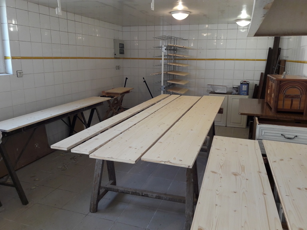 La salle hors poussière, c'est un petit bâtiment dans la cour, l'ancien laboratoire du boucher. C'est très pratique, sauf quand il pleut.