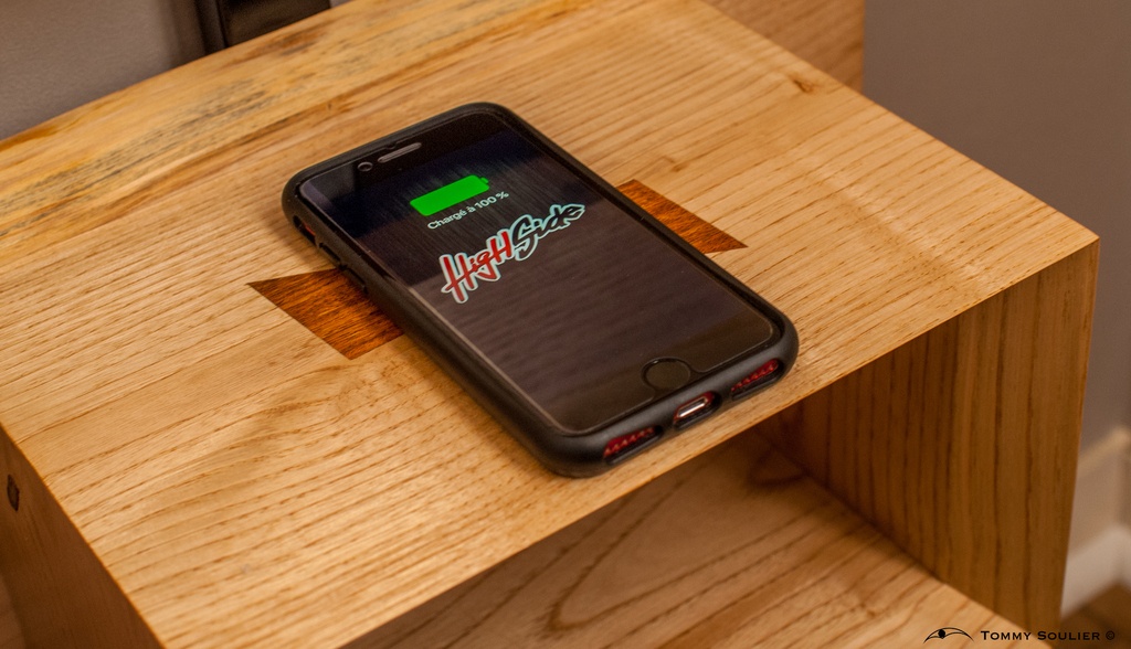 Bravo !! Tu as laissé combien d'épaisseur de bois pour que les chargeurs sans fil soient efficaces ? Et quel type de chargeur as-tu trouvé ? Merci