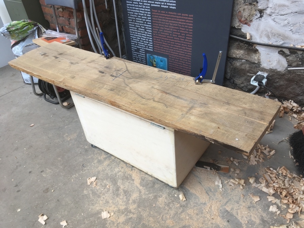 C’est la première fois que je m’attaque à dégauchir et raboter d’aussi long morceau de bois à la main… bon c’est pas nickel mais ça fait le taf. Bon un lit enfant c’est un poil plus grand qu’un banc de sciage, du coup j’ai du utiliser au maximum mes deux plateaux, j’ai donc conservé des noeuds que j’aurais mis de côté si j’avais eu plus de stock.
