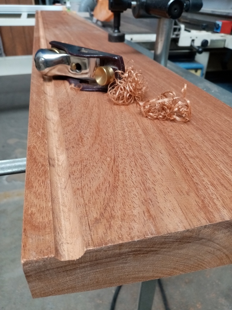 fabrication d'un gabarit pour raboter la pente ; défonceuce à la volée avec fraise à gorge pour usiner le larmier...