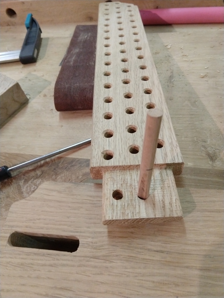 Le plateau est perforé de trous de 20mm et traité à l'huile alimentaire IKEA ( un reste....)
