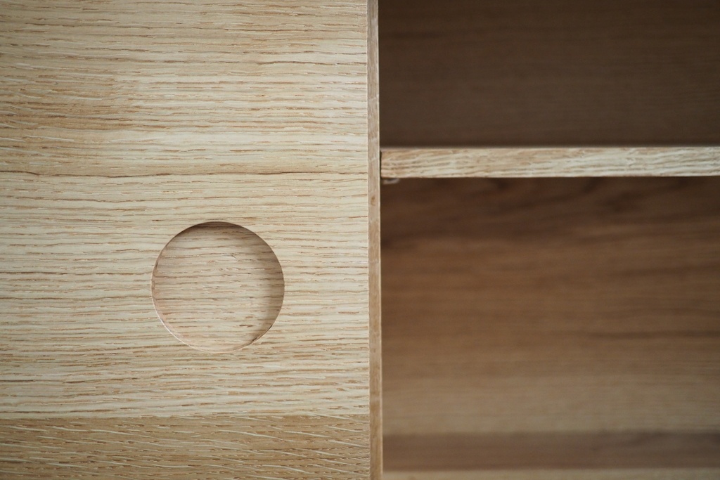 La grande classe ! Surtout le traitement de la tranche. J'aurais probablement utilisé une fraise à "poignée de tiroir" pour les poignées : meilleur grip et encore plus esthétique...