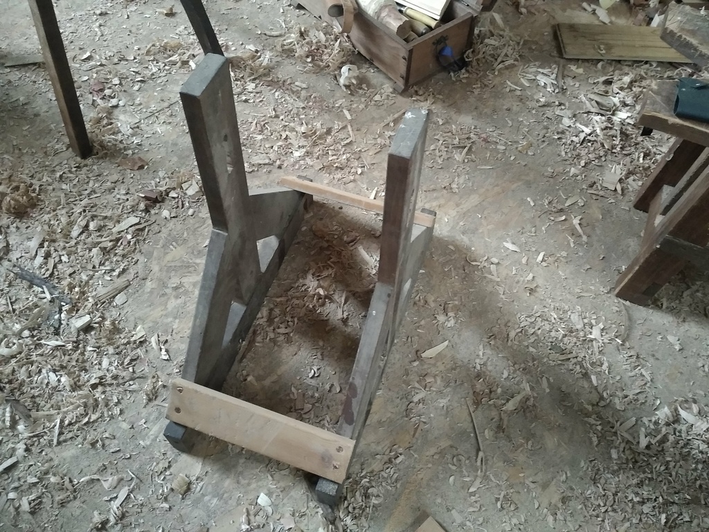 Dans les chutes de bois, j'avais gardé les pieds de la presse indépendante devenue presse d'établi, car il y a toujours une autre vie pour toute création en bois !!!!
