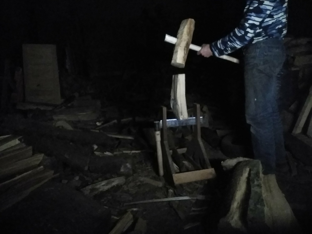 Pour les grosses bûches pour le poêle ça marche super bien aussi, mais là c'est le maillet qui ne convient plus car trop petit et les répercussions dans le bras sont désagréables.