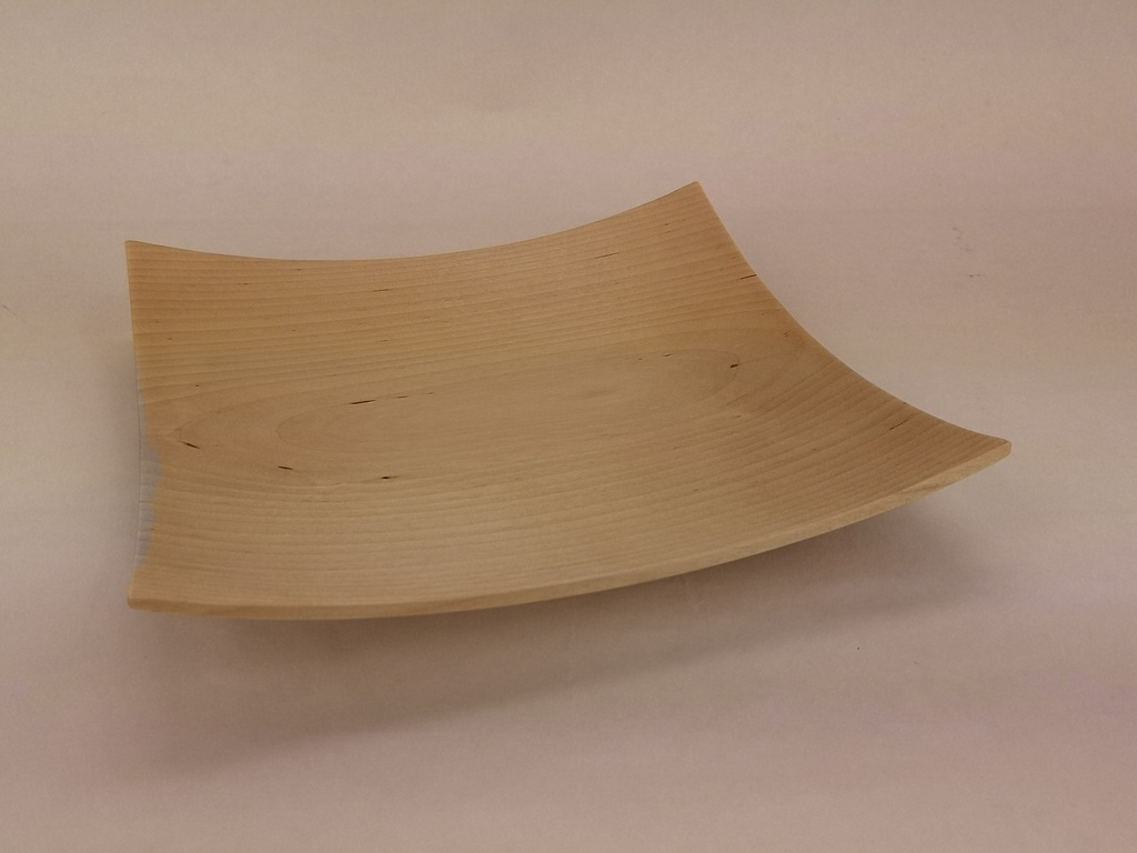Une belle assiette avec de belles proportions. Bravo. Le tournage de pièces carrées est toujours dangereux car on ne voit pas les coins, on est obligé de tourner de l’intérieur vers l’extérieur pour avoir une certaine régularité. Une variante de ce que propose Kentaro est de coller des chutes sur les côtés, cela épargne quand même les doigts… on peut couper ces chutes à la dimension du cercle extérieur cela n’augmentera pas le diamètre de tournage et facilitera beaucoup ton travail.