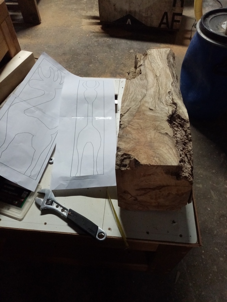 Après avoir fait le modèle plus petit, j'ai voulu tester les capacités de ma scie à ruban et de sont opérateurs. Le morceau de bois a été ramasser au bord de la mer. Je suppose que c'est du platane échauffé. Les spécialistes confirmerons ou pas