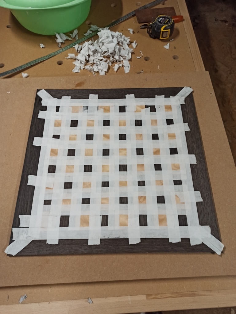 Réalisation d'un échiquier avec les chants en coupe a 15 °.