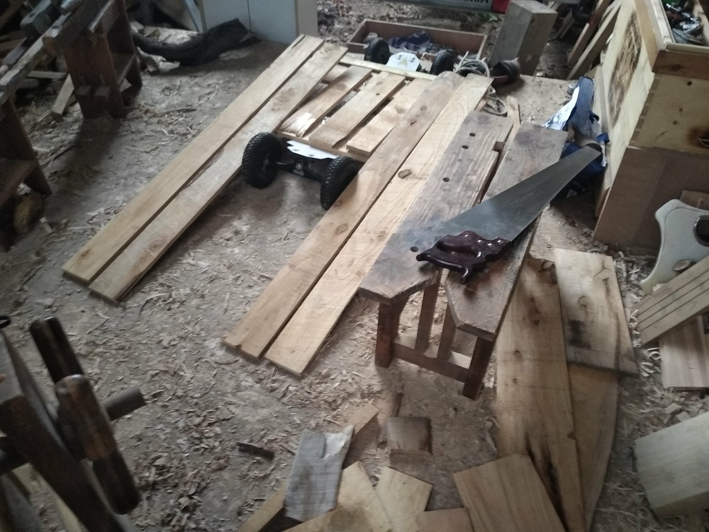 Je trouve plus facile de tirer une charge proche du sol et mon idée première était de fabriquer un traîneau.