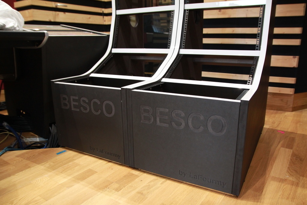 Conception et réalisation des 6 meubles de la cabine de mixage du studio d’enregistrement BESCO.
