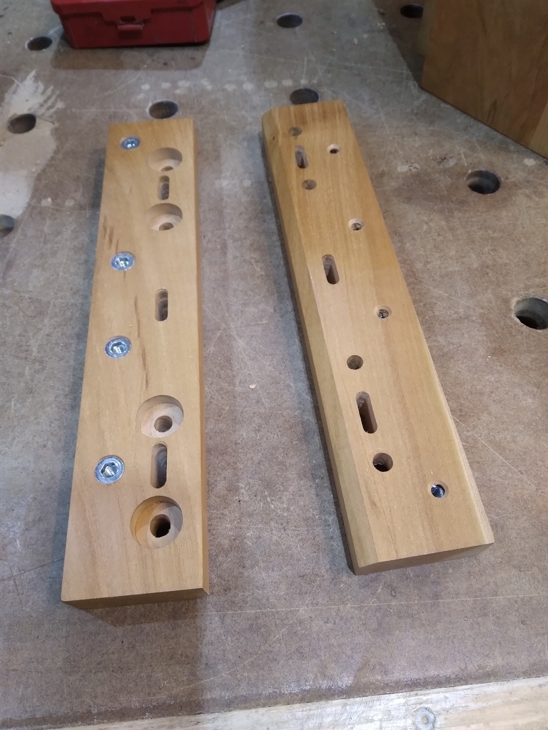 Je les ai faites à la scie sous table pour la coupe et parce que je suis un psychorigide du joint parfait, je les reprends au rabot avec une boîte à recaler spéciale.